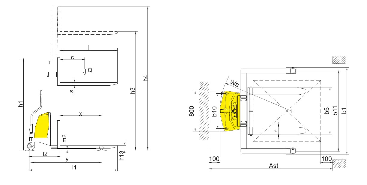 - Gerbeurs entièrement électriques : Toutes les fonctions (déplacement et levage) sont alimentées électriquement, ce qui en fait le choix privilégié pour une manutention et un empilement efficaces.