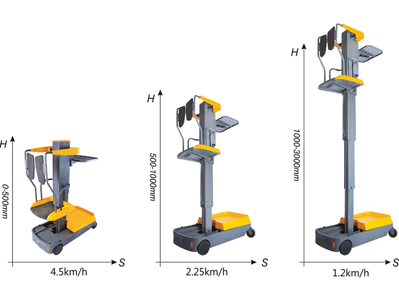 Comparaison d'efficacité : Les méthodes traditionnelles (telles que l'utilisation d'échelles ou d'échafaudages) prennent beaucoup de temps à installer et à déplacer, ce qui se traduit par une faible efficacité ; Préparateur de commandes OPSM Les solutions, avec leurs capacités de levage rapide et de mouvement flexible, peuvent atteindre rapidement des hauteurs désignées, améliorant considérablement l'efficacité opérationnelle.