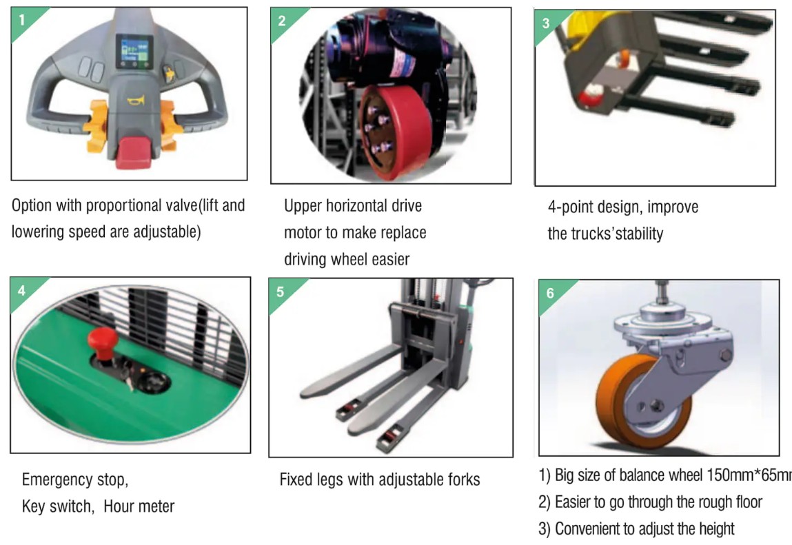 Pilers électriques et les chariots élévateurs électriques, comme deux piliers, soulevez et déplacent le fret, mais ils diffèrent fondamentalement dans la conception, la fonctionnalité et les scénarios d'application.